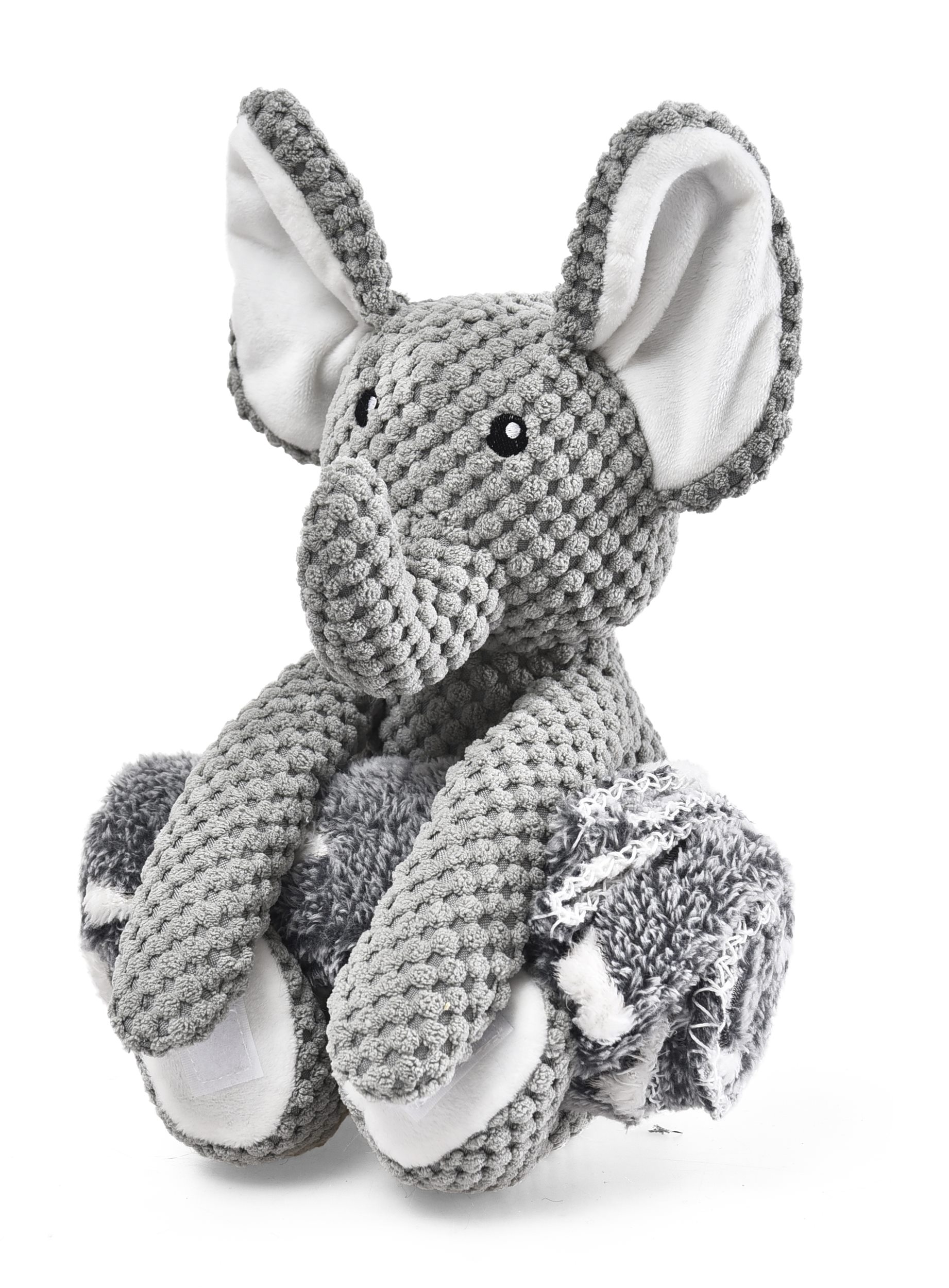 Barry King heledates toonides plüüsist koeralelu elevant koos pehme tekiga.