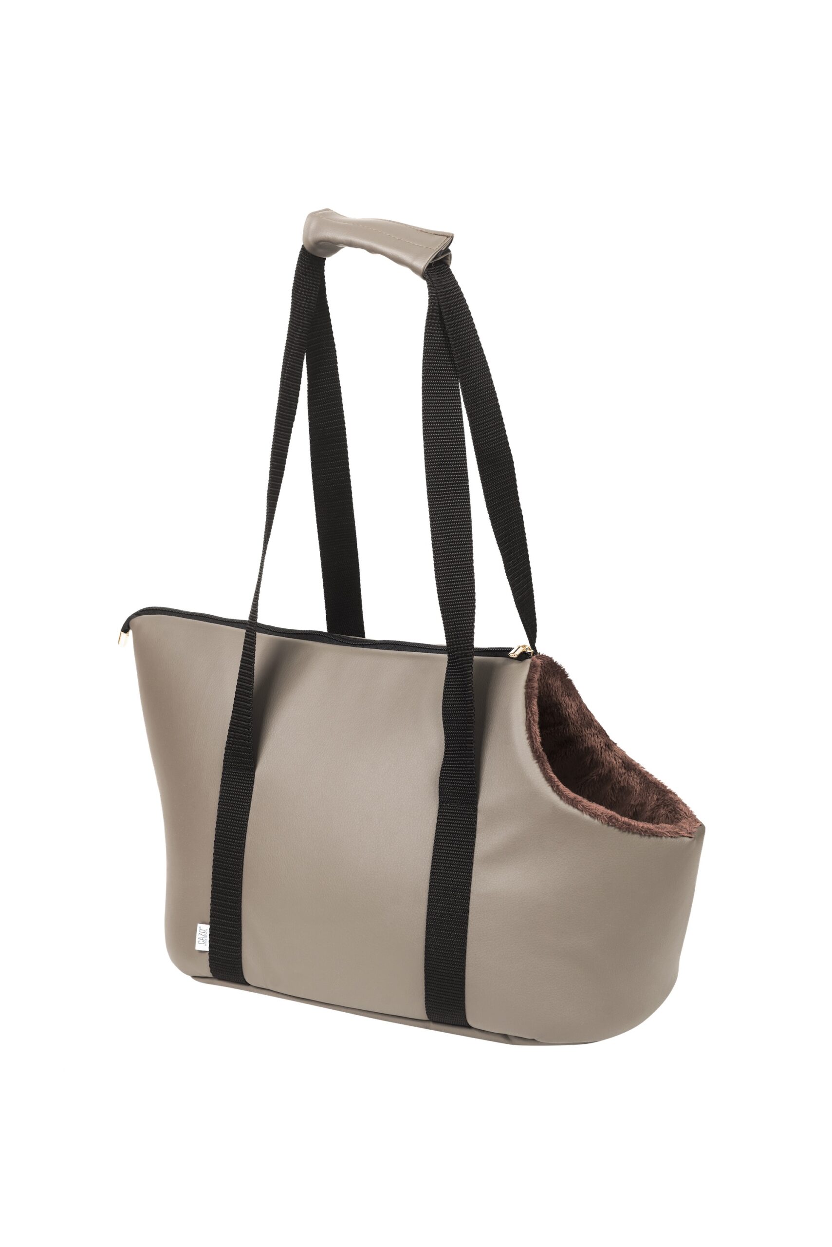 Imelise välimusega kriimustustele vastupidavast kunstnahast ja sünteetilise karvaga kvaliteetne kandekott Sinu lemmikule.