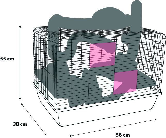 • Komplekt sisaldab platvorme, kaldteid, jooksuratast, varjualust, tunneleid ja söögikaussi.