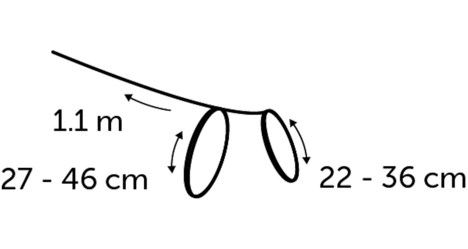 Kaela poolse osa pikkus on muudetav 22-36cm ning keha poolse osa pikkus 27-46cm.
