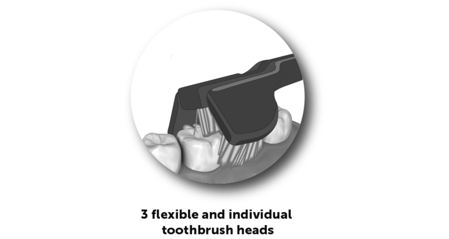 Tänu oma kolmele peale, saab korraga puhtaks hamba nii sisemise, välimise kui ka pealmise külje.