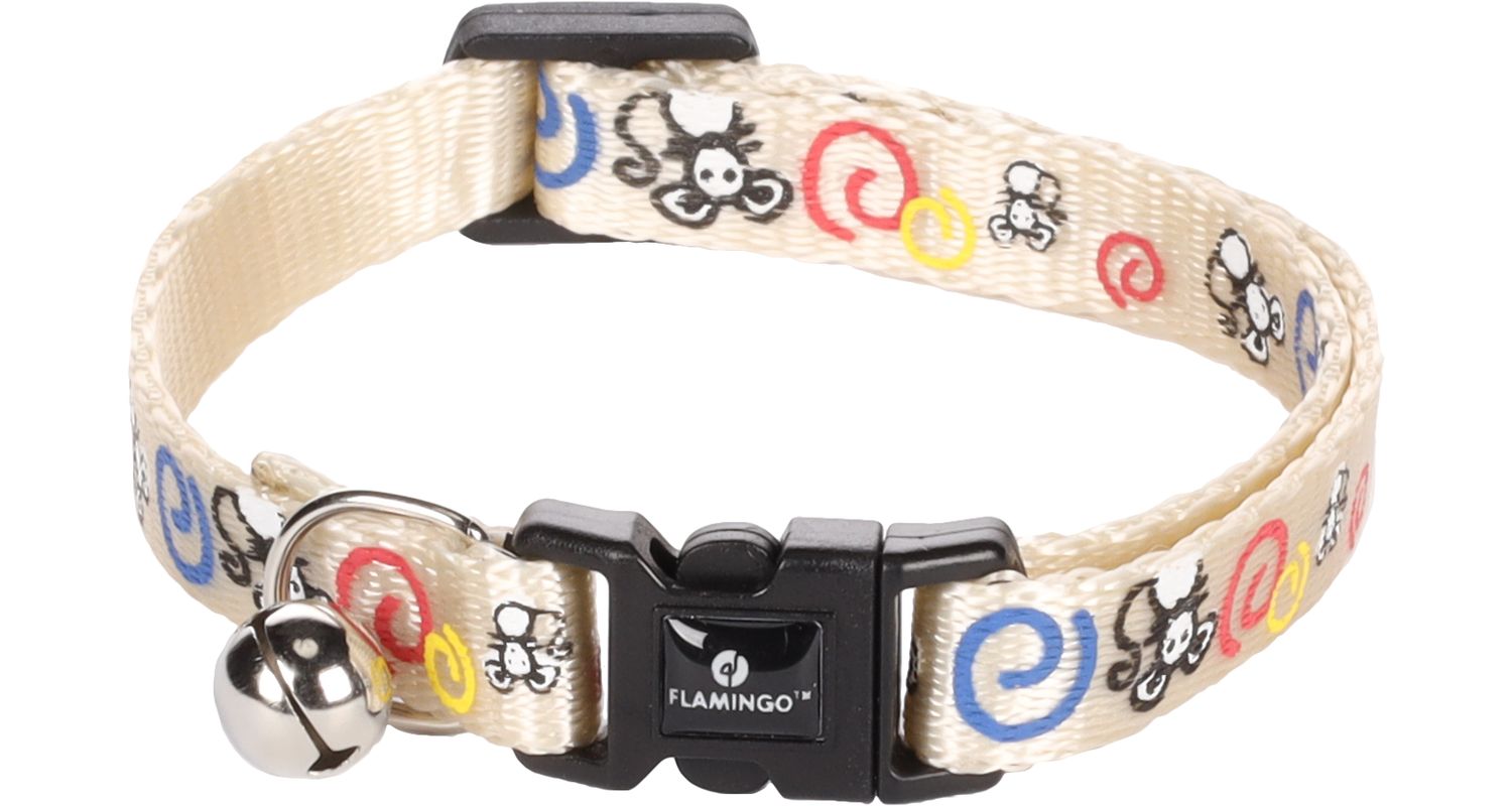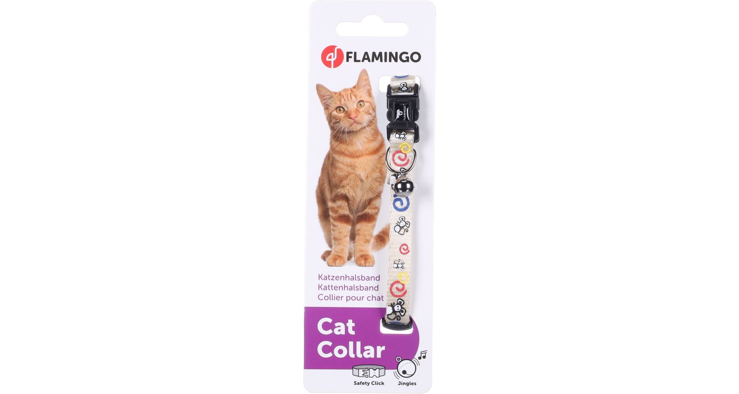 Flamingo kellukesega kaelarihm täiskasvanud kassile.