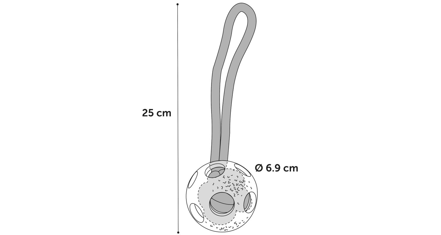Palju rõõmu pakkuv mänguasi köiega pall.