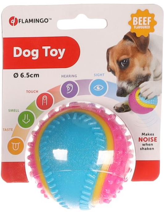 Flamingo värviline kõiki meeli stimuleeriv pall koertele.