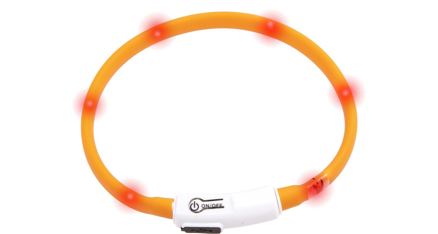 Flamingo LED valgusega oranži värvi kaelarihm kassidele.