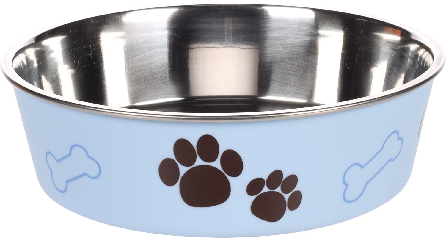 Flamingo libisemisvastase põhjaga helesinist värvi metallkauss koerale.