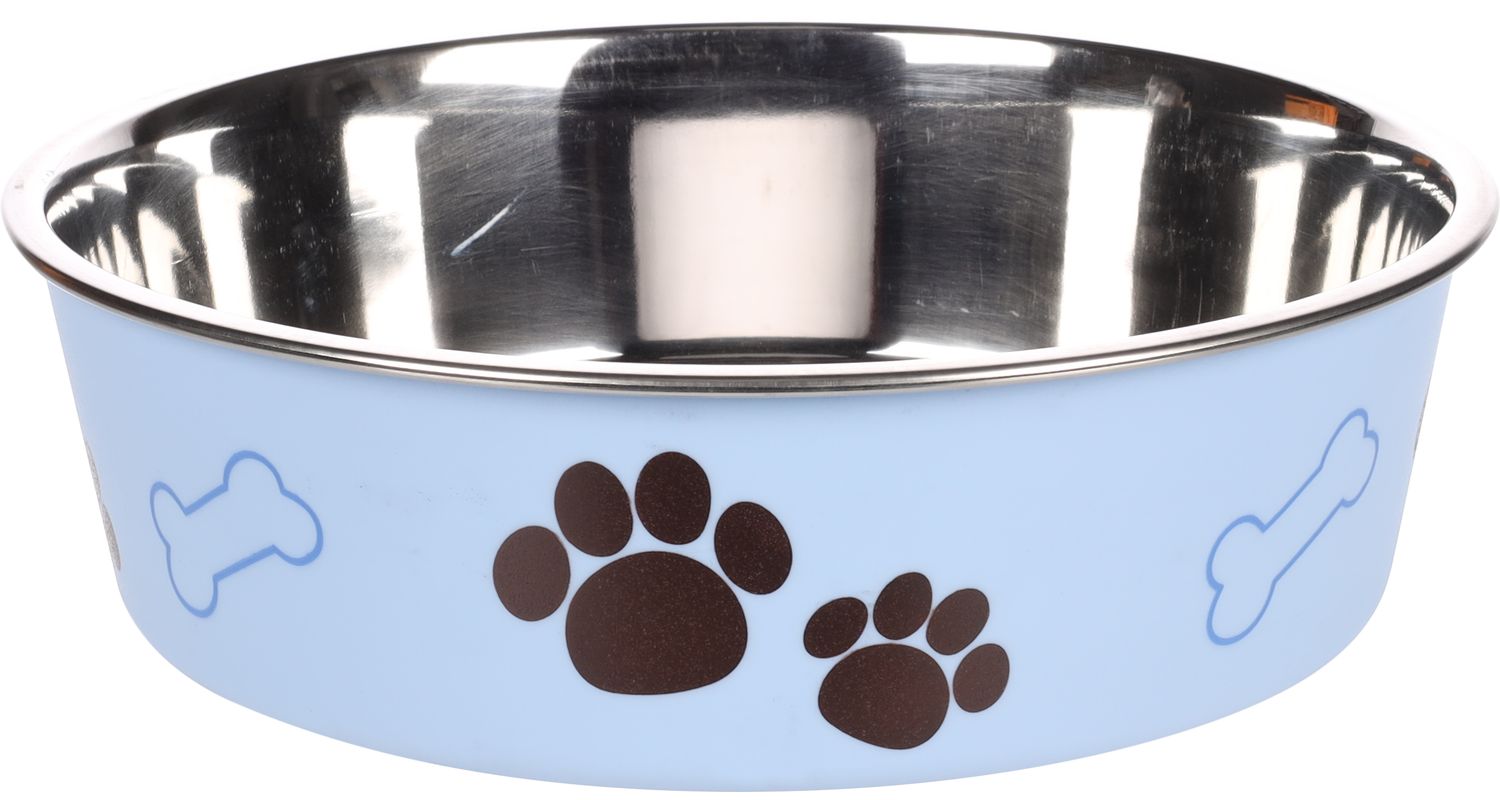 Flamingo libisemisvastase põhjaga helesinist värvi metallkauss koerale.