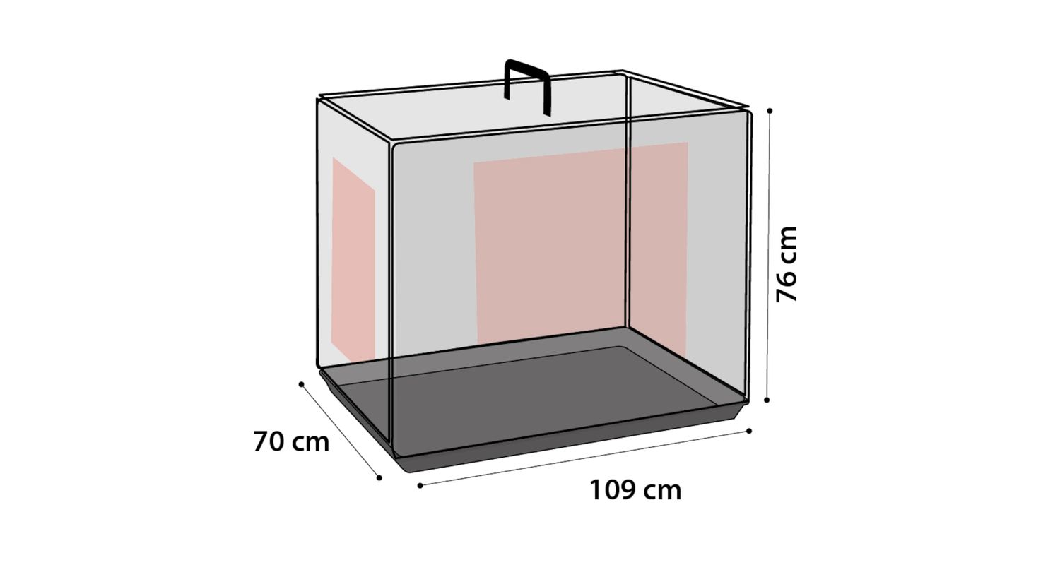 Pikkus, laius ja kõrgus: 109 x 70 x 76 cm.