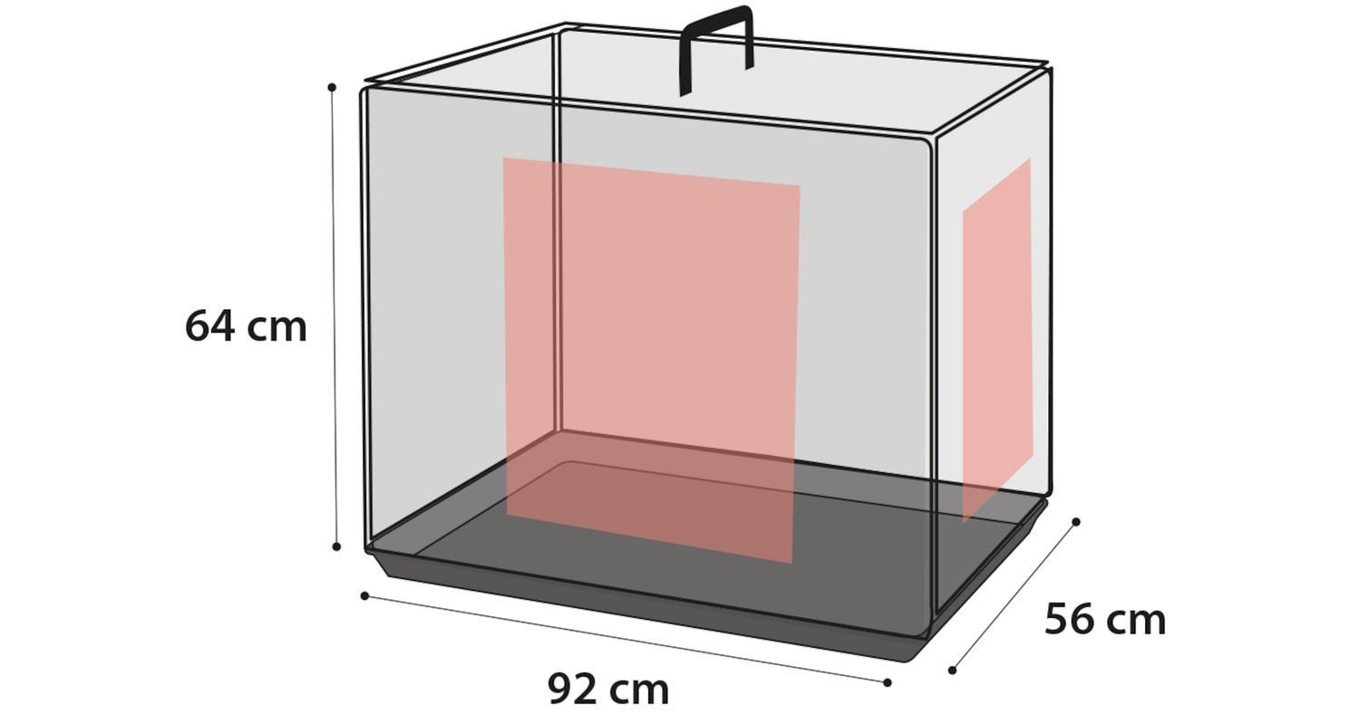 Pikkus, laius ja kõrgus: 92 x 56 x 64 cm.