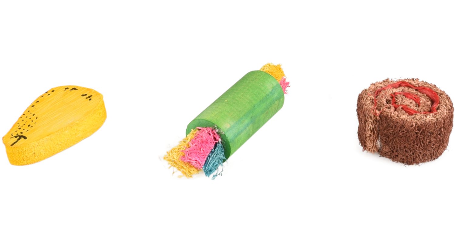 Mängi ja näri puidust mänguasjad pakuvad närilisele lõbu ja aitavad hoida hambad korras.