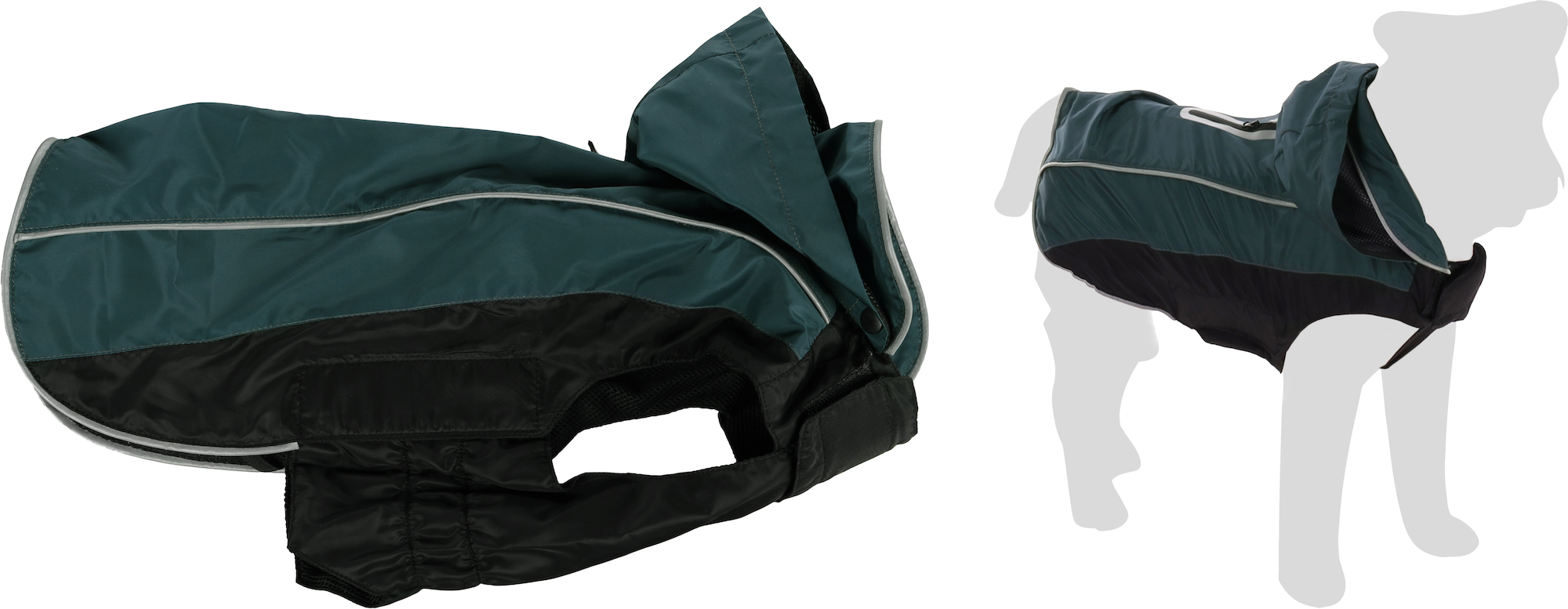 Flamingo Veru roheline helkurribadega vihmajope koerale.