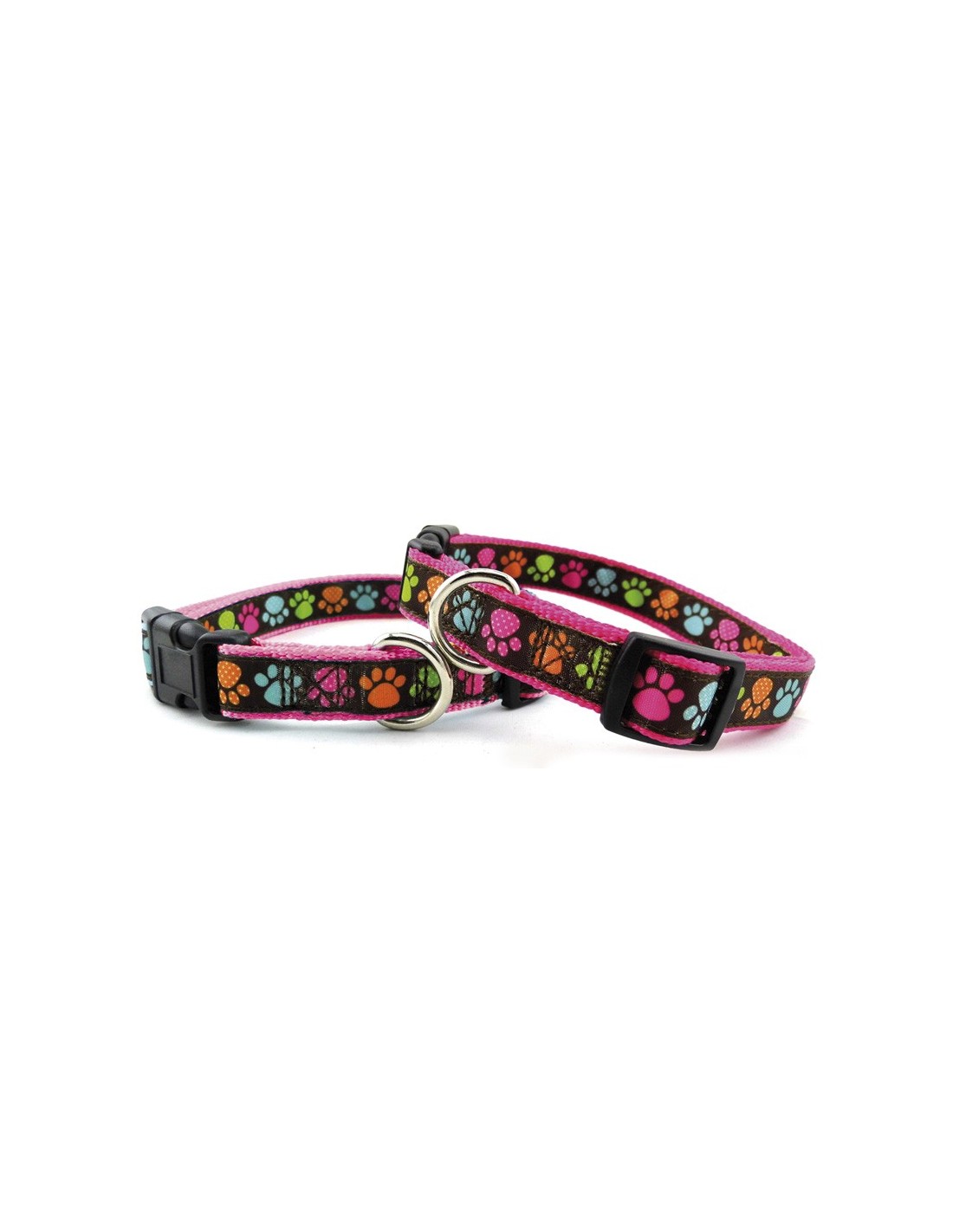 Koera kaelarihm mugavast nailonist, värvilise käpamustriga. Rihm on reguleeritav, praktilise plastikust sulgurklambriga ja varustatud metallist kinnitusrõngaga.